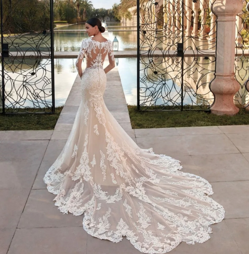 Long-sleeved luxury mermaid wedding dress Annabell with train and lace