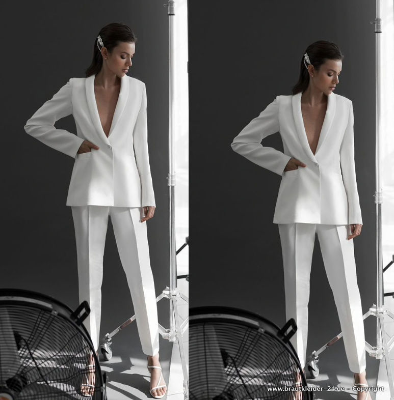 Braut Hosenanzug für den Standesamt Schlicht und Elegant in Weiß