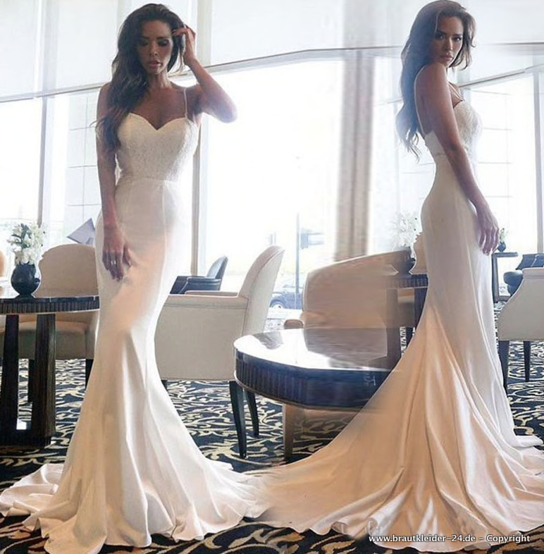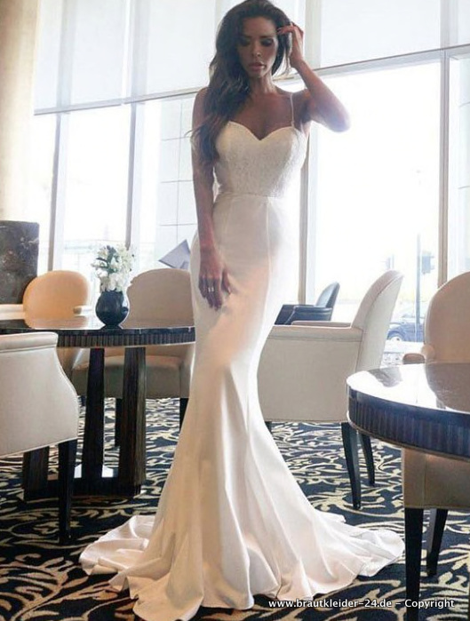 Elegantes Meejungfrau Kleid für den Standesamt mit Spaghettiträger
