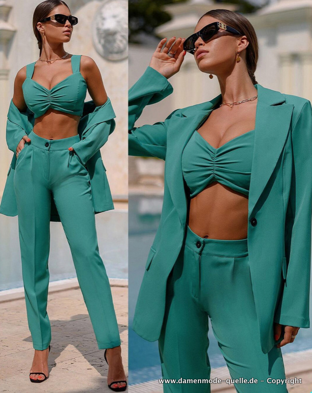Eleganter Smoking Hosenanzug in Grün Businessoutfit