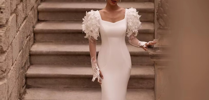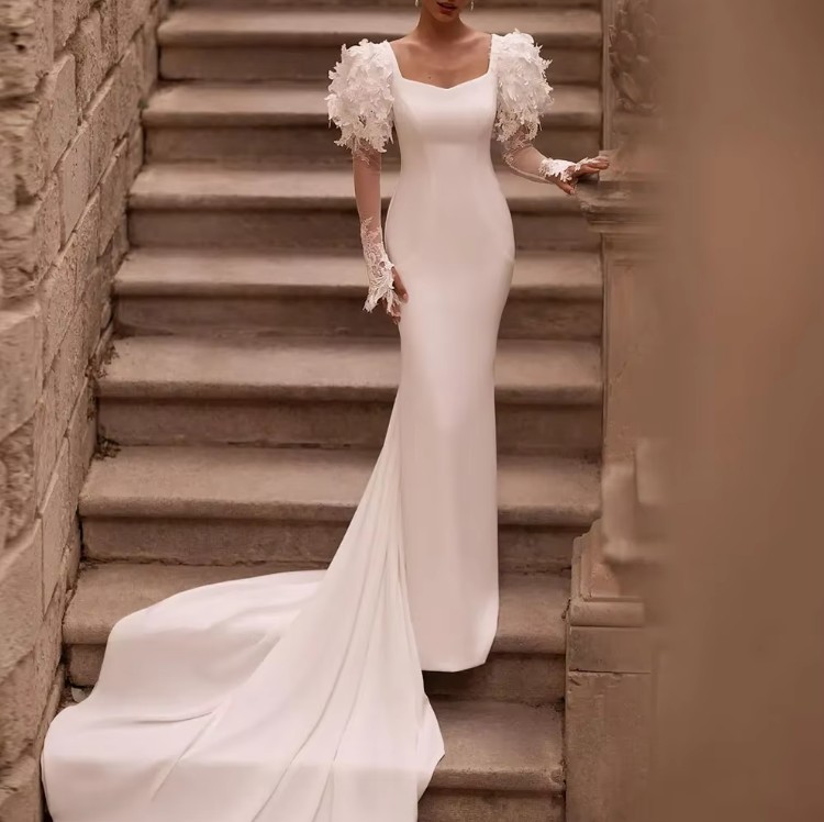 Long-sleeved I-line wedding dress Josephina with lace and train