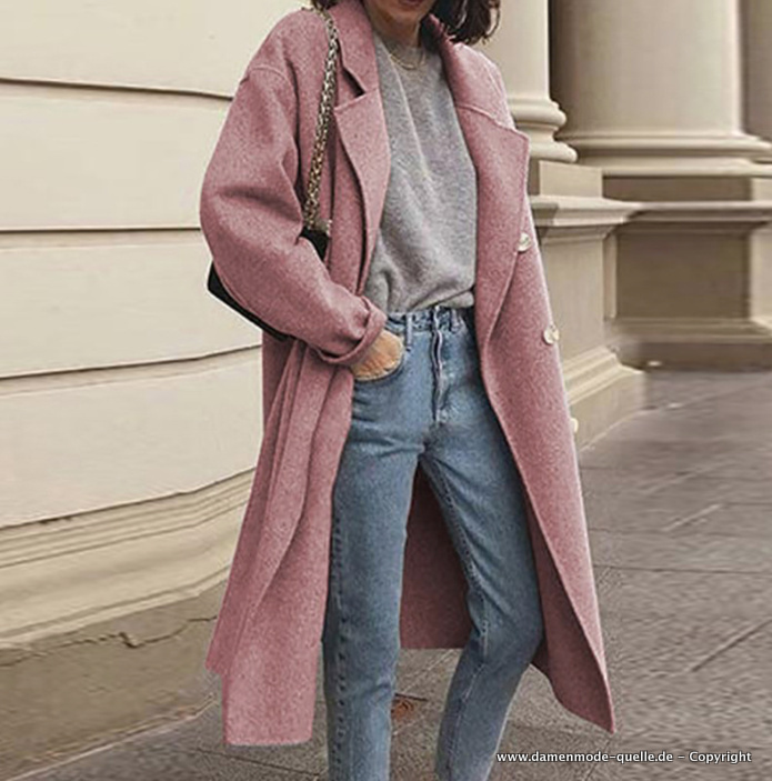 Zweireiher Trenchcoat Übergangsjacke für Damen in Rosa
