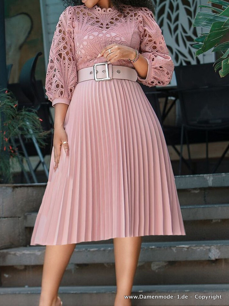 Elegantes A Linie Plus Size Midi Kleid in Zartrosa mit Spitze
