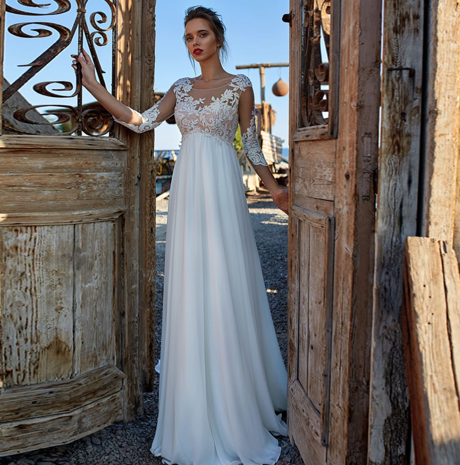Empire wedding dress Celia with sleeves and lace, floor length