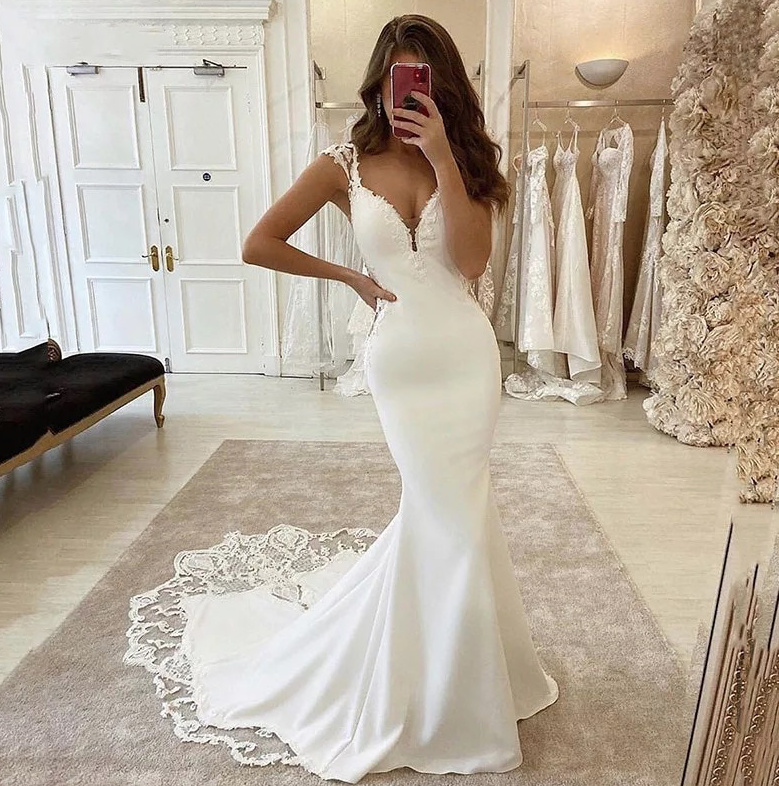 Herz Ausschnitt Meerjungfrau Brautkleid Domenika mit Spitzen Schleppe