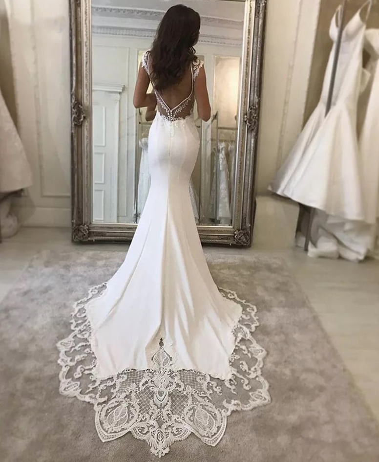 Sweetheart neckline mermaid wedding dress Domenika with lace train