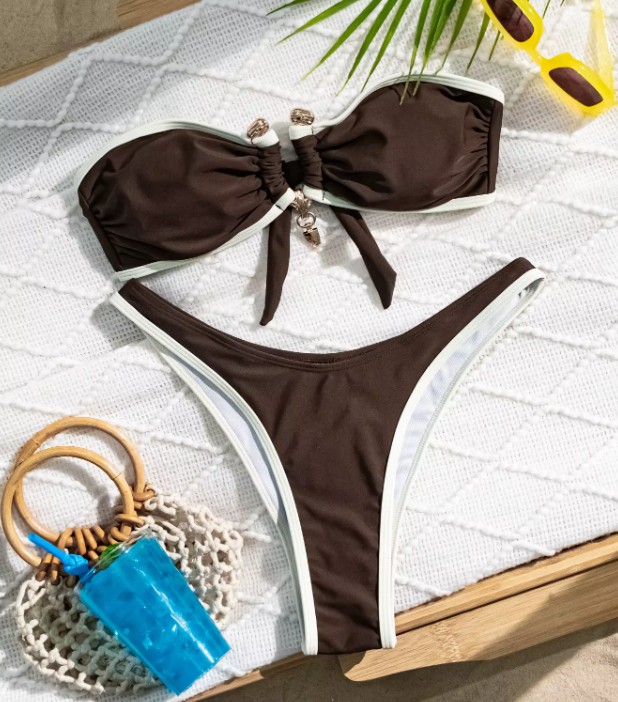 Bandeau Bikini Sixtina Pleated Brown Beige