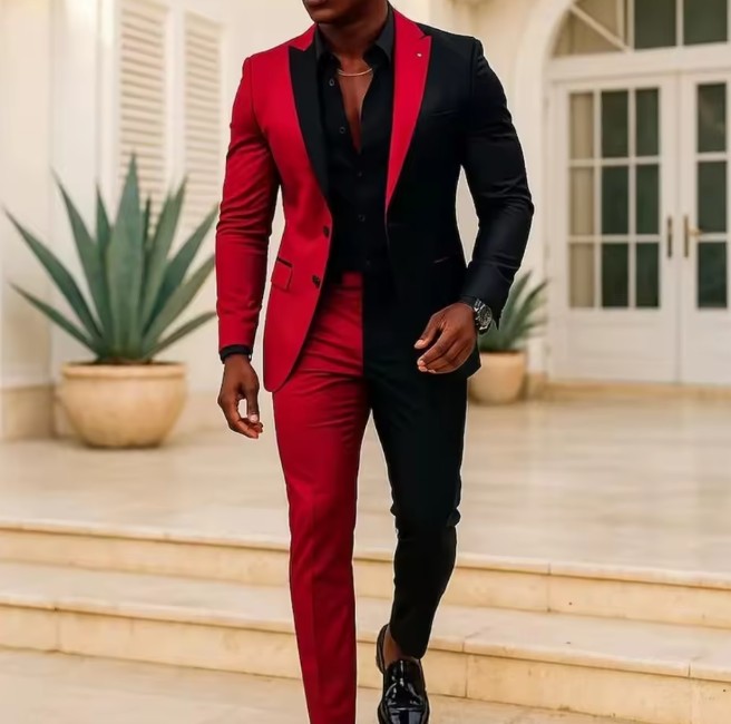 Bräutigam Outfit Hochzeitsanzug Isra in Rot Schwarz Zweifarbig