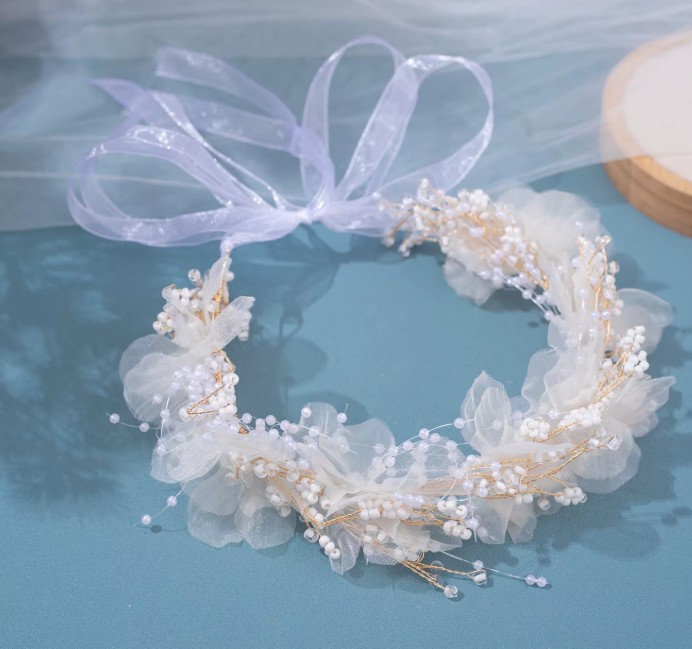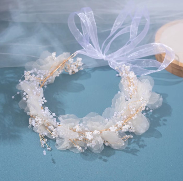 Pearls, flowers, crystal bridal headband