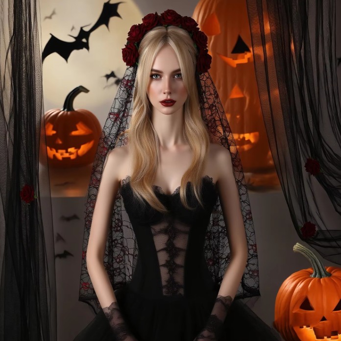 Gothic Stil Braut Blumen Haarreif Jamie mit Schleier