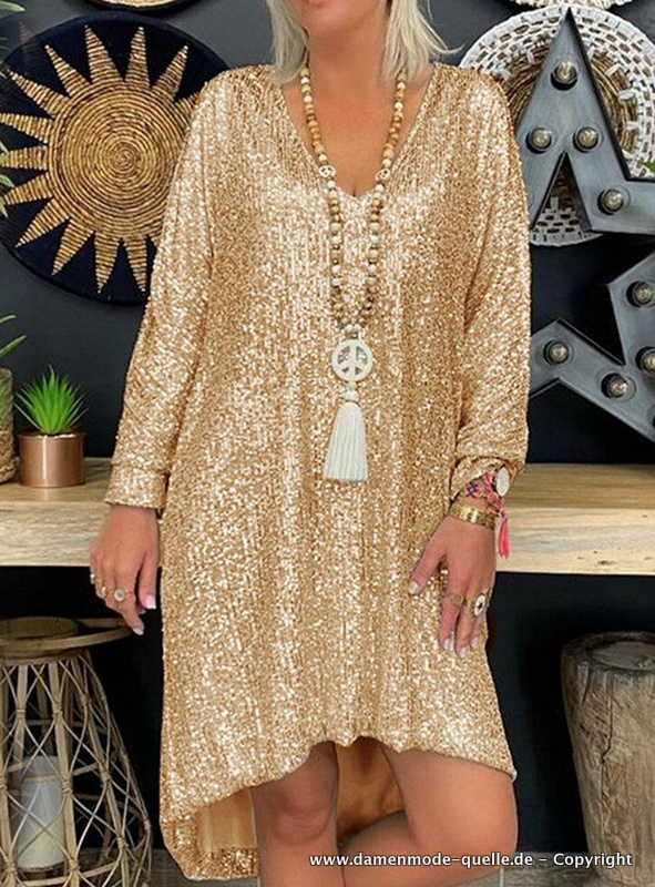 Langarm Glitzer Hängerchen Elegant in Gold