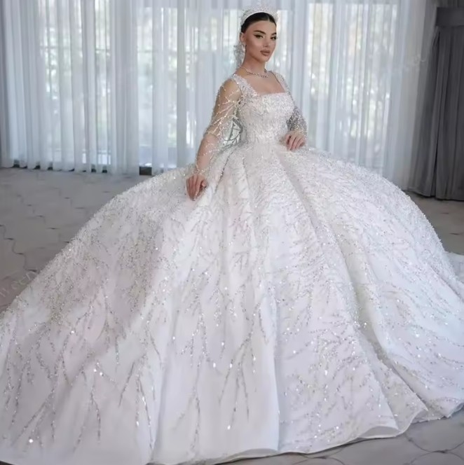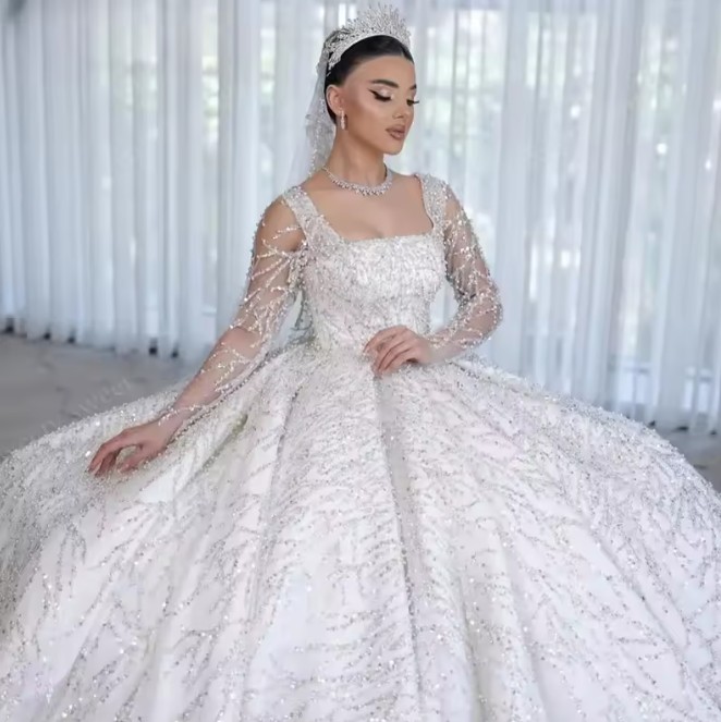 Long-sleeved glitter princess wedding dress Janka