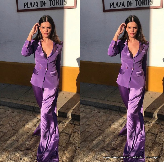 Satin Damen Hosenanzug Elegant in Lila