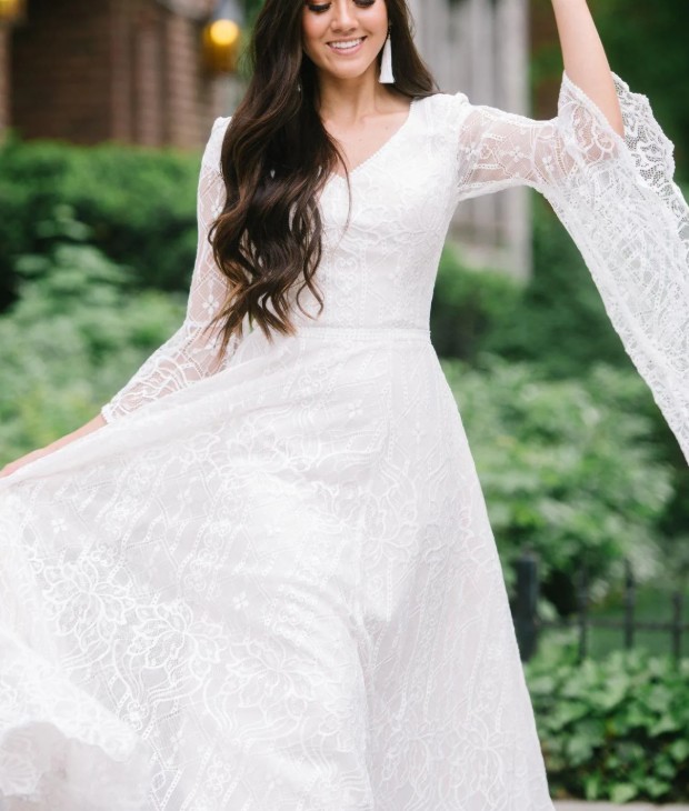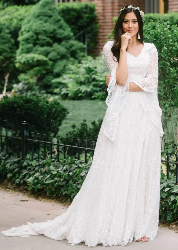 Boho style empire wedding dress Janett made of lace with flared sleeves