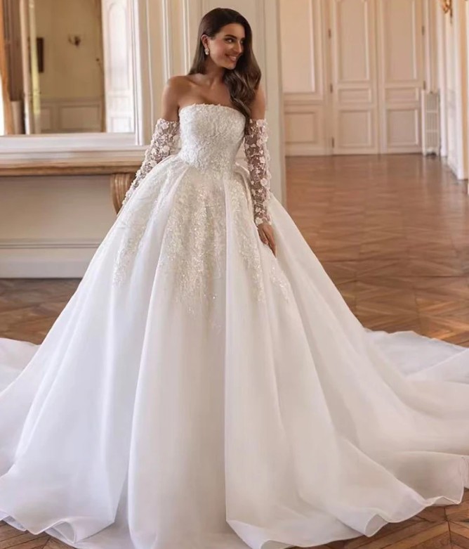 Schulterfreies Prinzessin Brautkleid Jamila mit Schleppe Ärmel Abnehmbar