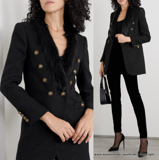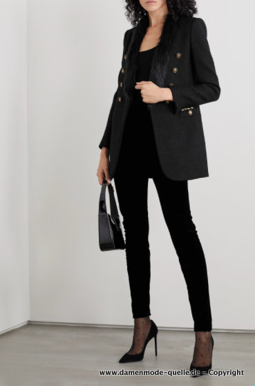 Eleganter Hosenanzug in Schwarz mit Boa Kragen