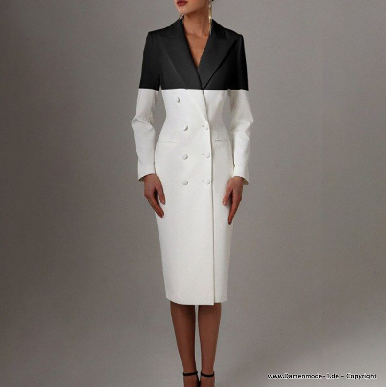Langer Zweireiher Patchwork Damen Mantel in Schwarz Weiß