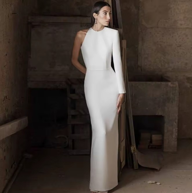 One Shoulder Clean Chic Wedding Dress Ivonne Backless