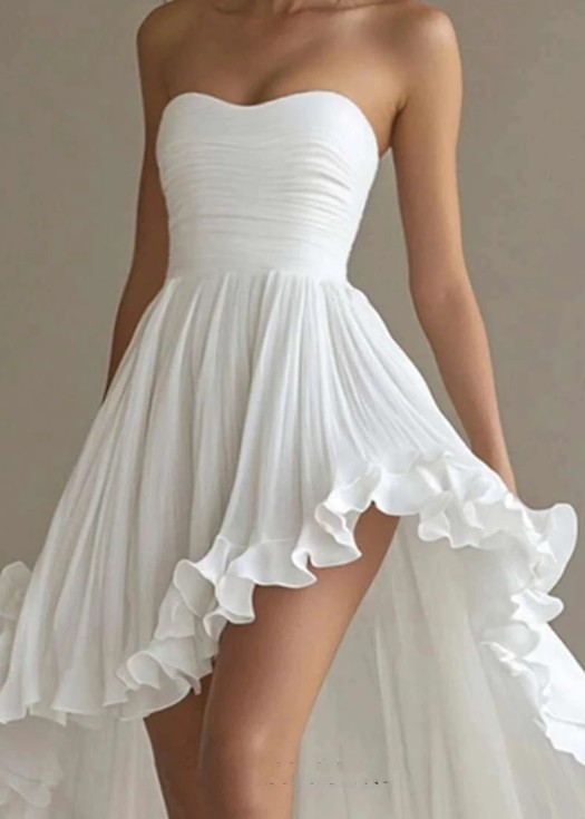 Schulterfreies Chiffon Vokuhila Standesamt Brautkleid mit Volants