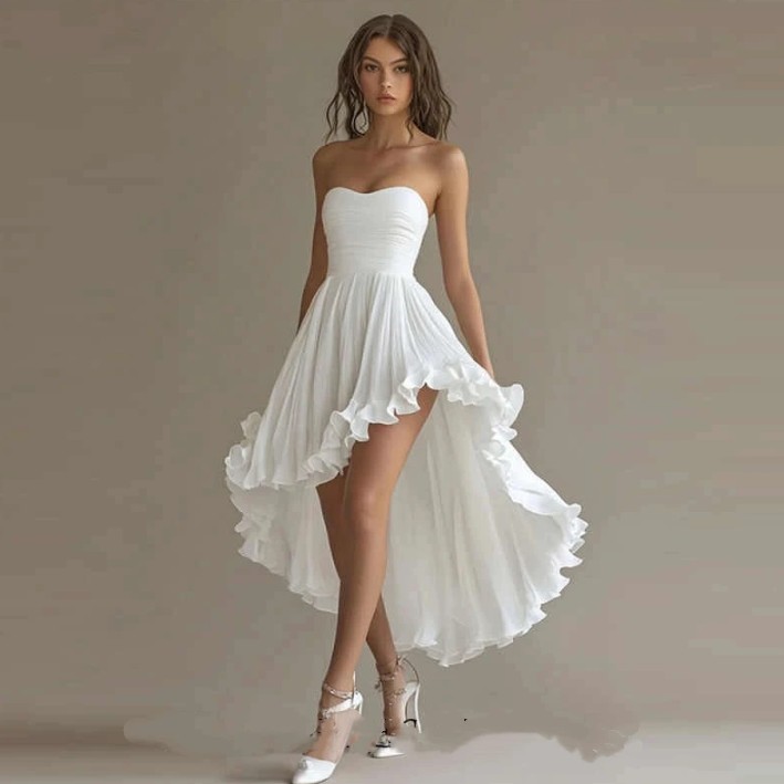 Off-the-shoulder chiffon high-low civil wedding dress with ruffles