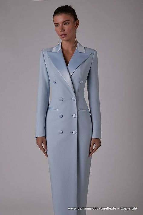 Langer Damen Blazer Mantel Elegant in Hellblau