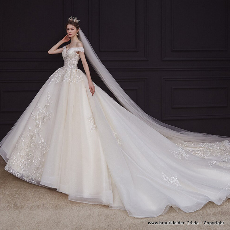 Schulterfreies Ball Linie Brautkleid Marieke Hochzeitskleid mit Schleppe