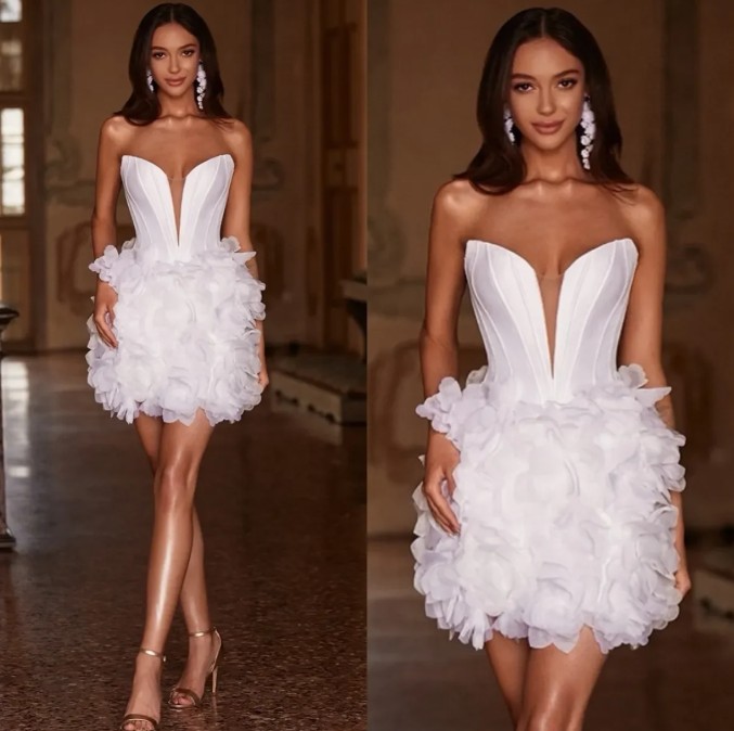 Sexy Mini Brautkleid Jarina Schulterfrei mit Volants