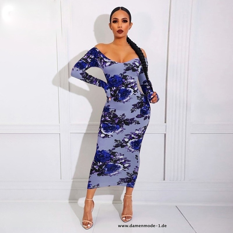 Blumenmuster Bodycon Midi Maxi Kleid für Damen in Blau
