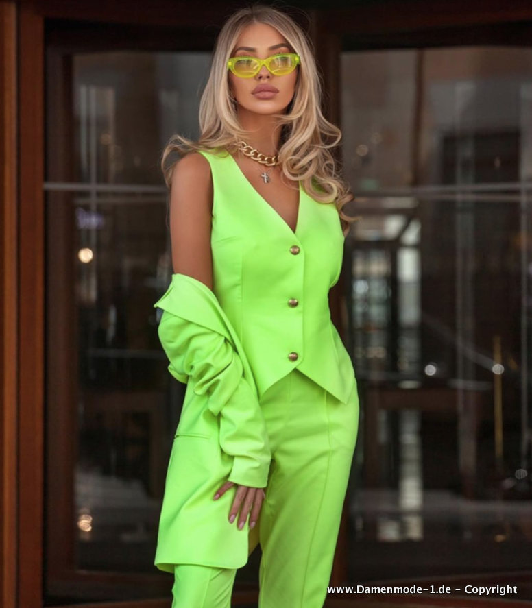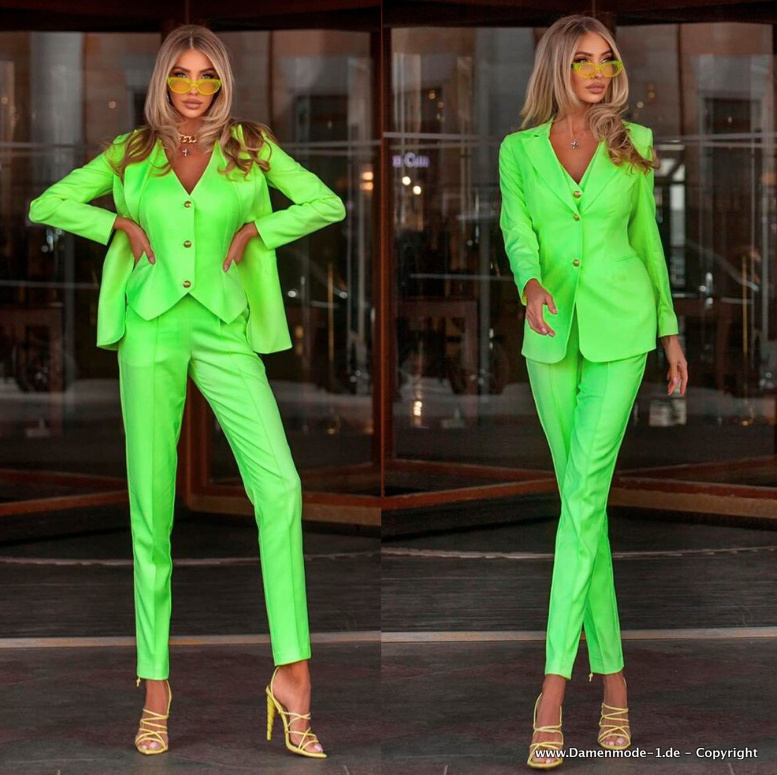 Business Hosenanzug in Mintgrün Schlank Geschnitten Dreiteilig