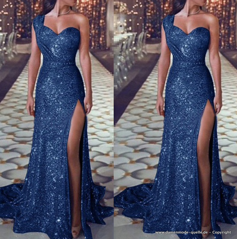 One Shoulder Meerjungfrau Cut Out Abendkleid mit Pailletten in Dunkelblau