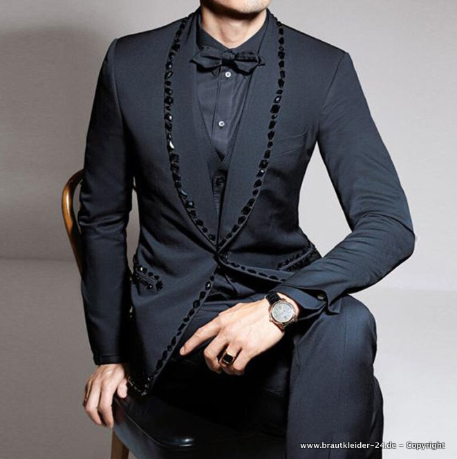 3 Teiliges Herren Anzug in Schwarz mit Applikationen