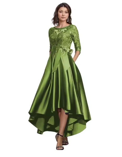 A Linie Vokuhila Kleid Jean Elegant für Hochzeitsgäste in Grün mit Spitze