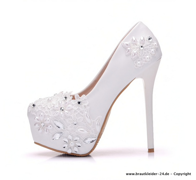 Königin High Heels Brautschuhe Abendschuhe mit Blumen in Weiß