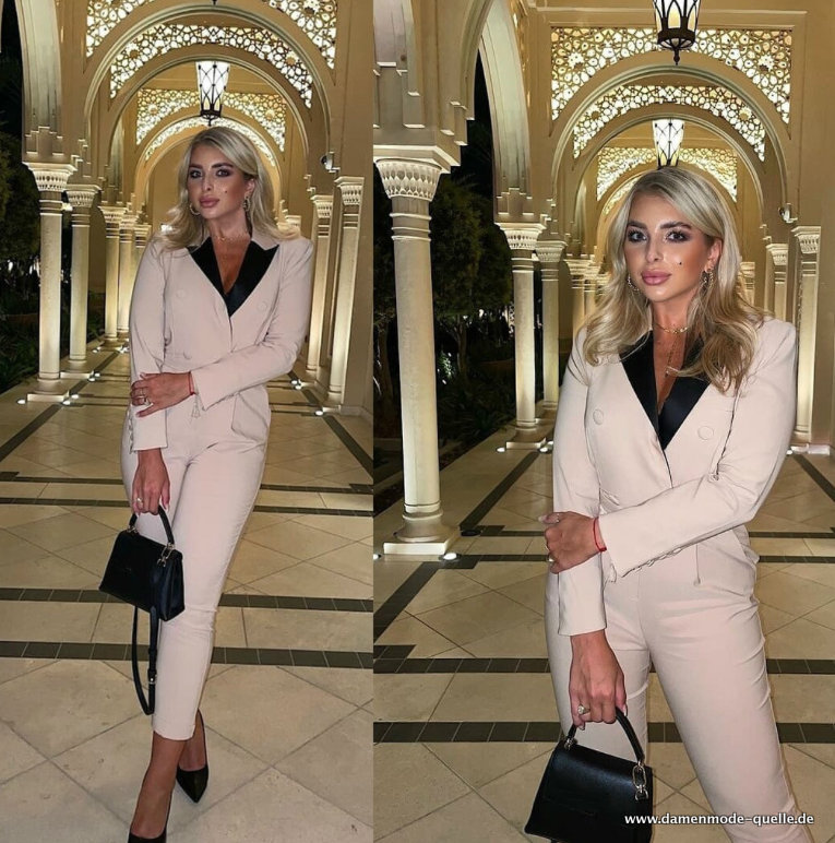 Business Hosenanzug Schmal Geschnitten mit Reverskragen in Champagne