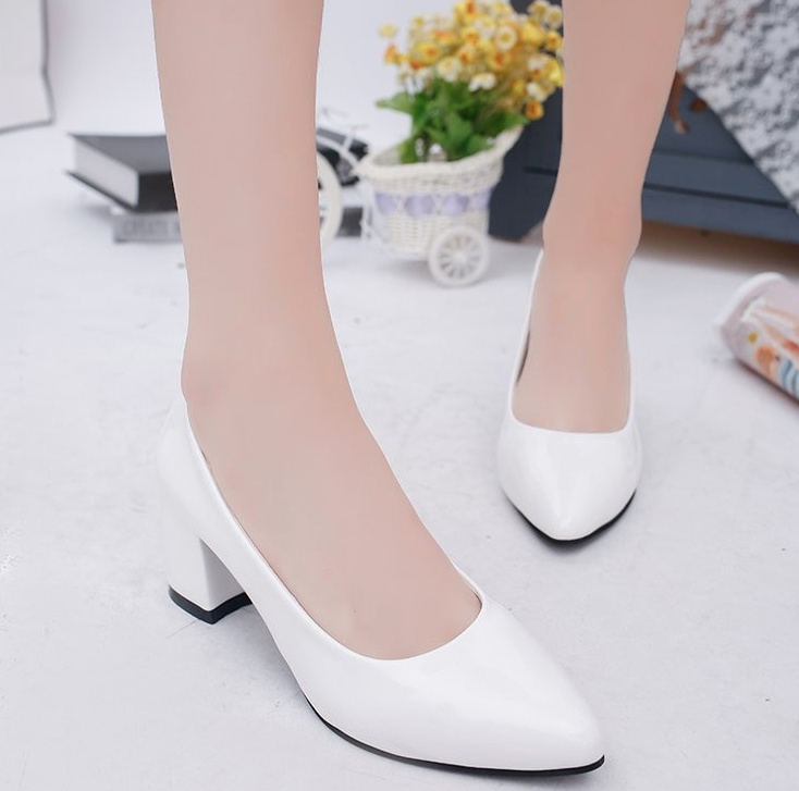 Patent leather bridal shoes, wedding shoes with block heel, simple