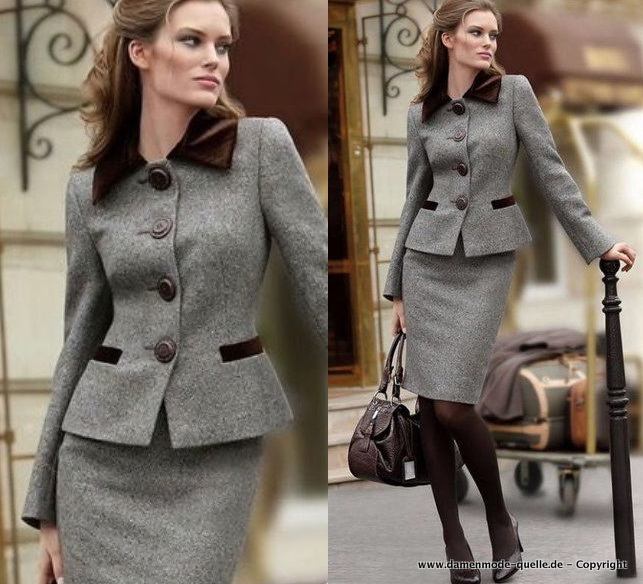Winter Tweed Damen Kostüm Warm und Elegant