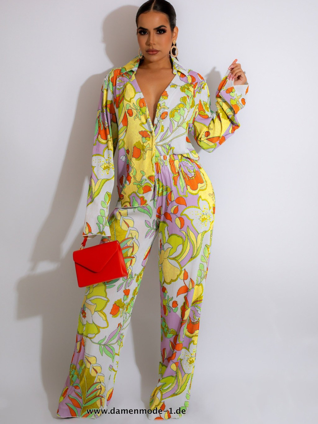 Blumendruck Damen Set Shirt Top und Hose in Gelb