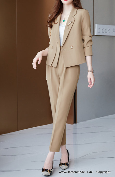 Eleganter Business Hosenanzug in Beige Bürooutfit