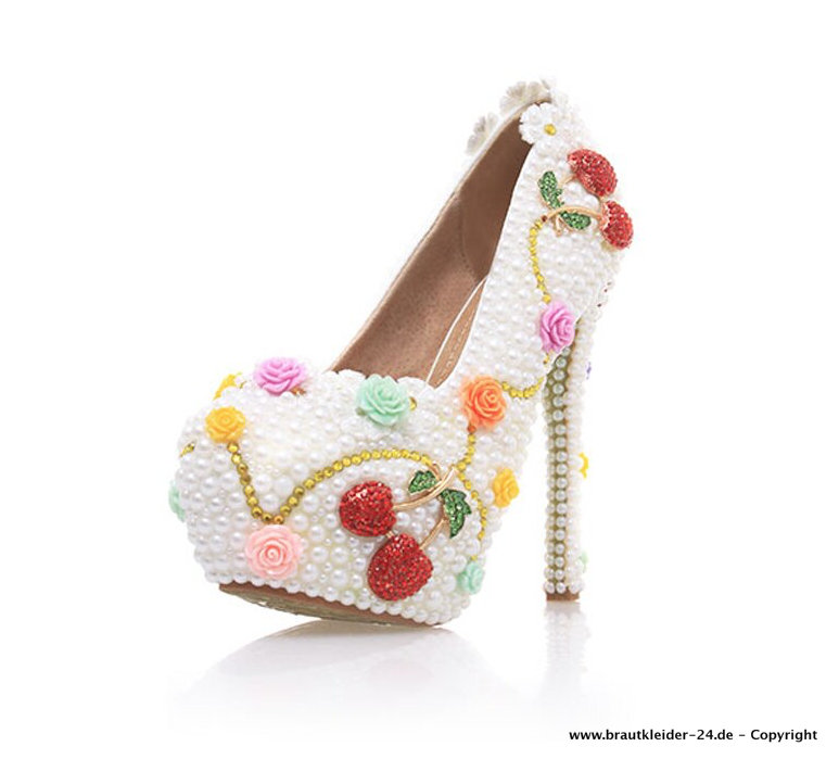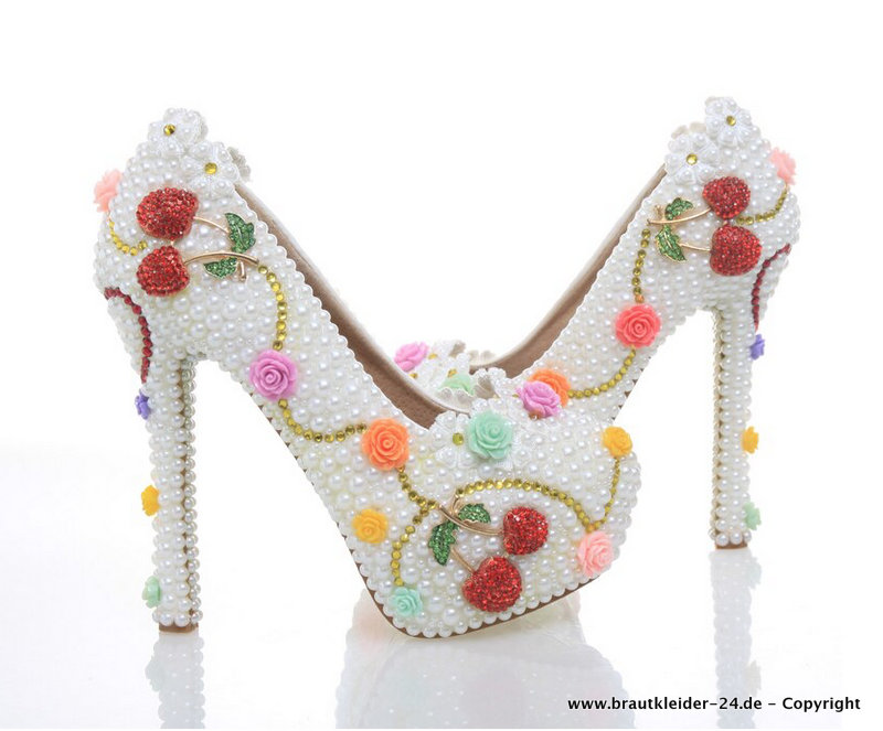 High Heels Brautschuhe Abendschuhe mit Weiße Perlen und 3D Blumen bis Gr 43