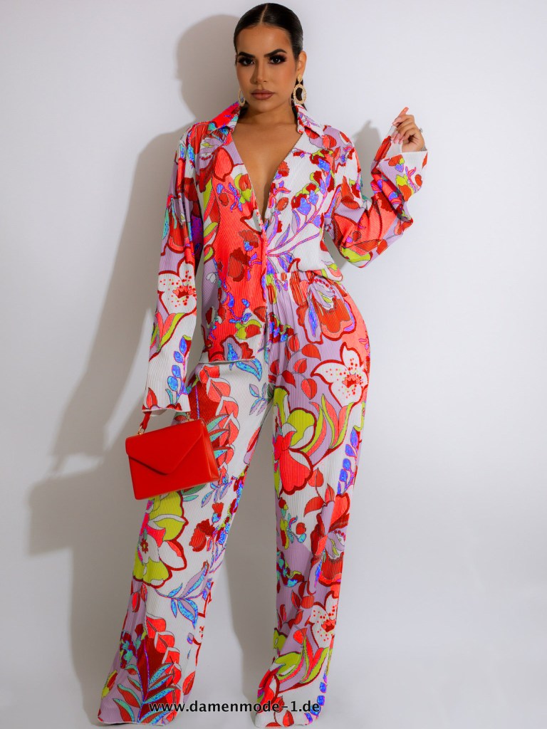 Blumendruck Damen Set Shirt Top und Hose in Rot