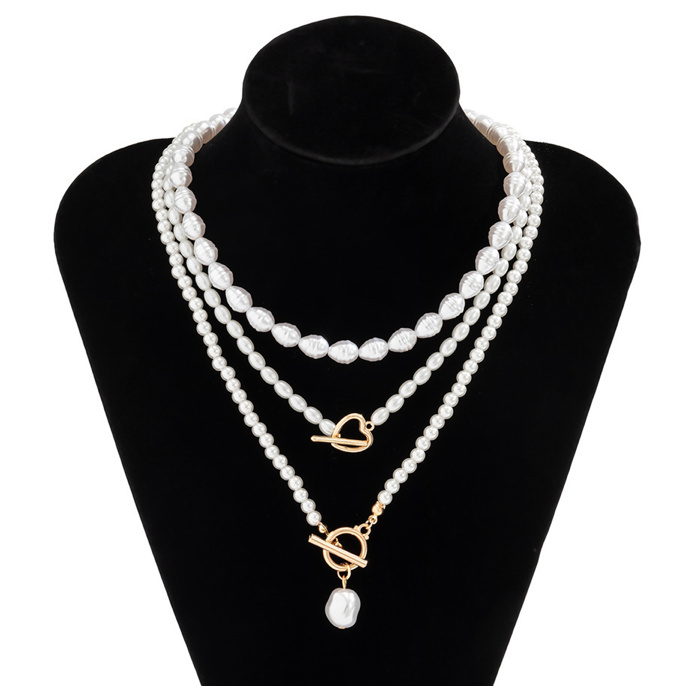 Vintage Baroque multi-layered pearl bridal necklace in white gold