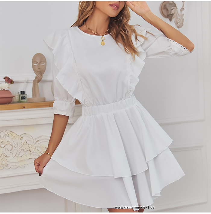 Weißes Baumwolle Spitzen Decor Mini Kleid