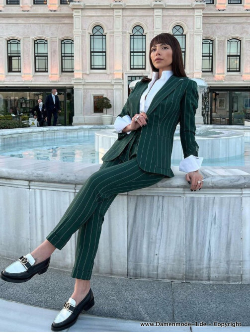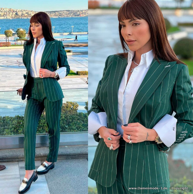 Damen Business Hosenanzug Elegant mit Nadelstreifen Grün