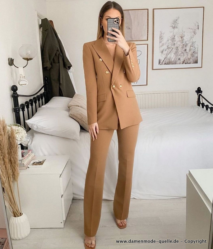 Damen Business Hosenanzug mit Taschen in Braun