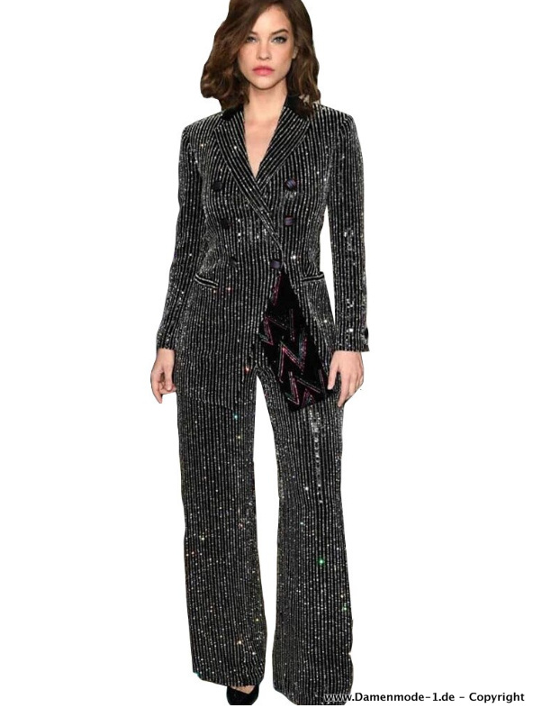 Damen Smoking Hosenanzug Festlich mit Bunte Pailletten