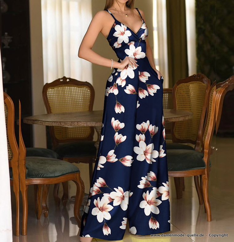Sommer Blumen Print Jumpsuit Einteiler in Navyblau