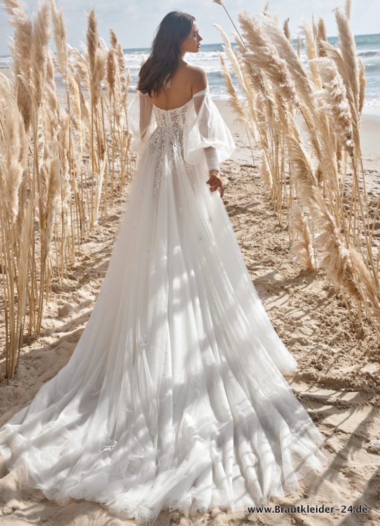 Kreuzträger Tüll Brautkleid Nele mit herz Dekolette und Schleppe