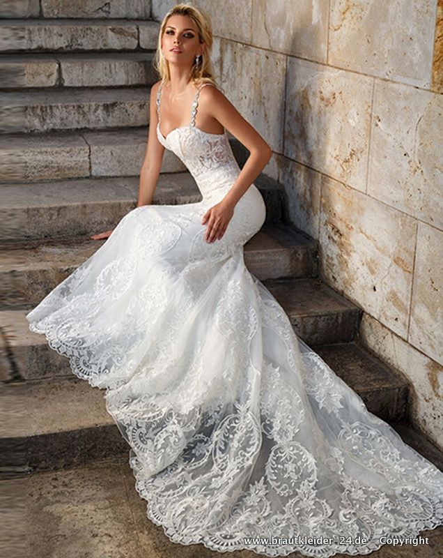 Sexy Meerjungfrau Brautkleid Neila mit Spaghetti Träger Schleppe und Spitze