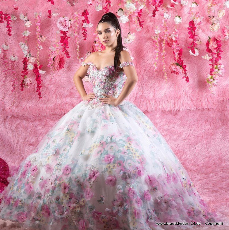 Ball Linie Brautkleid Oceane mit Bunte Blumen