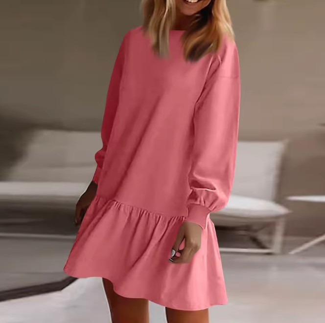 Langarm Hängerchen Sommerkleid in Rosa Locker geschnitten